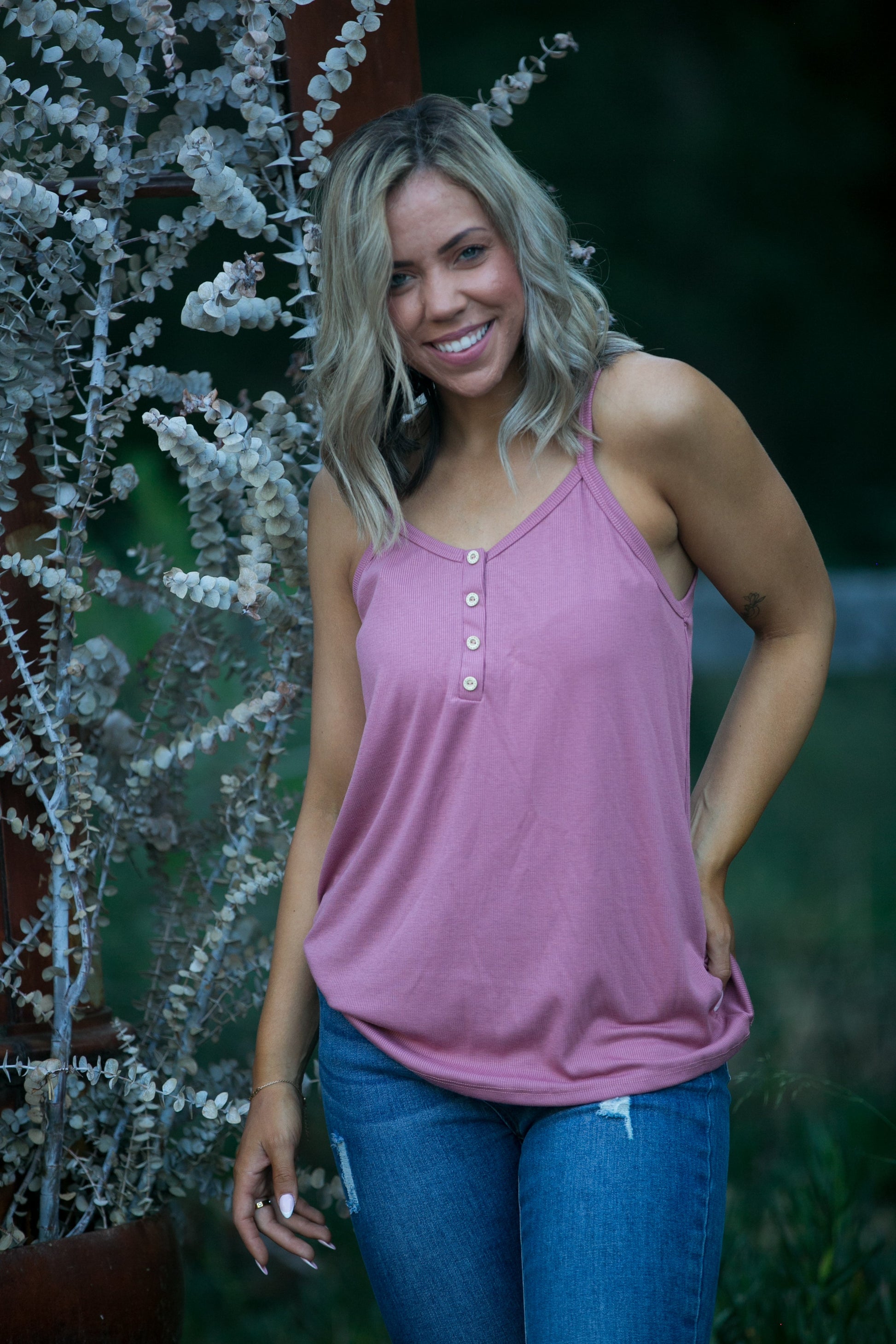 This tank will become the heart & soul of your wardrobe. Made from the highest quality fabric, this tank offers nice weight that will keep you both warm and cool. With a relaxed fit, this tank features, a v-neck with button details and 1 inch shoulder straps.