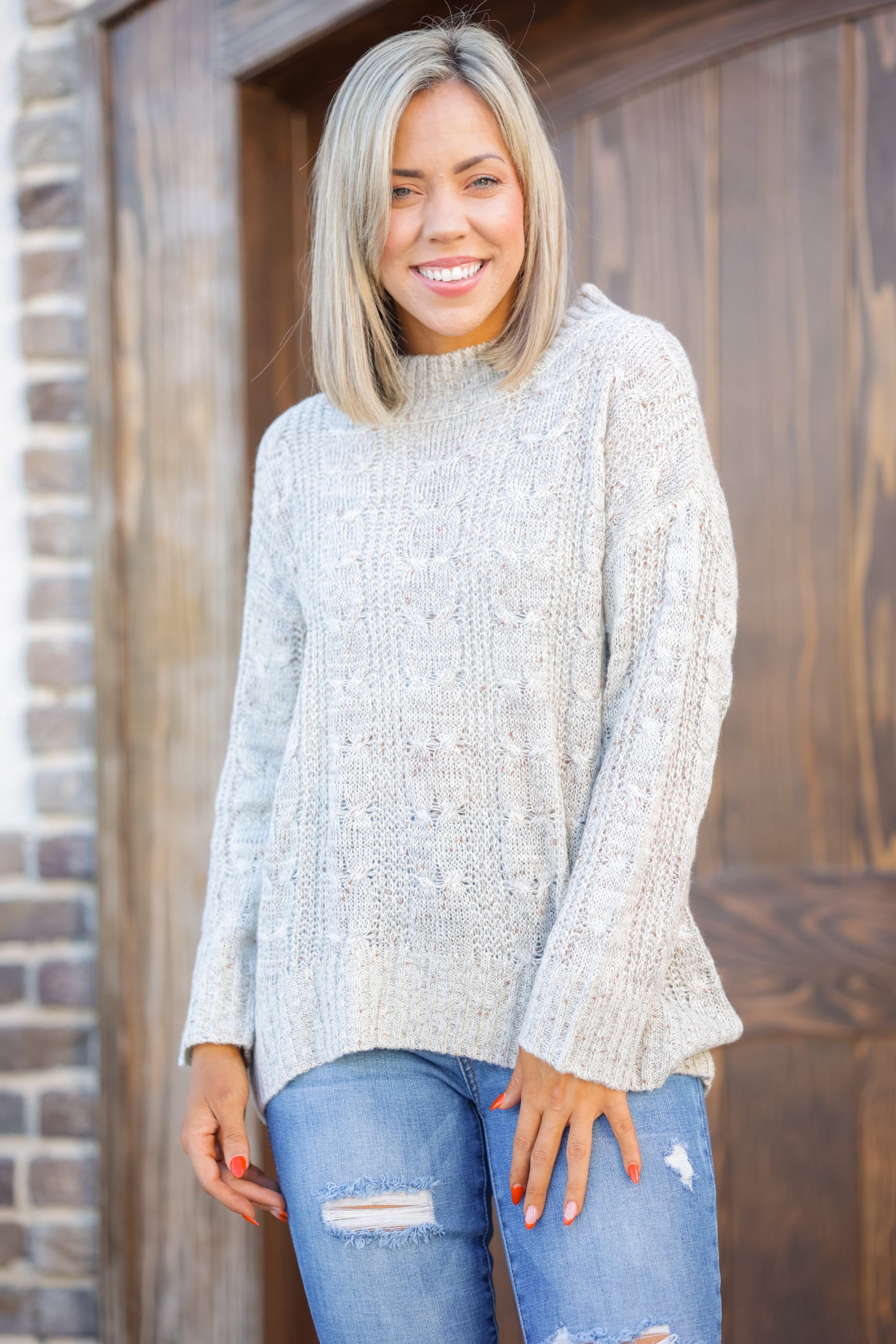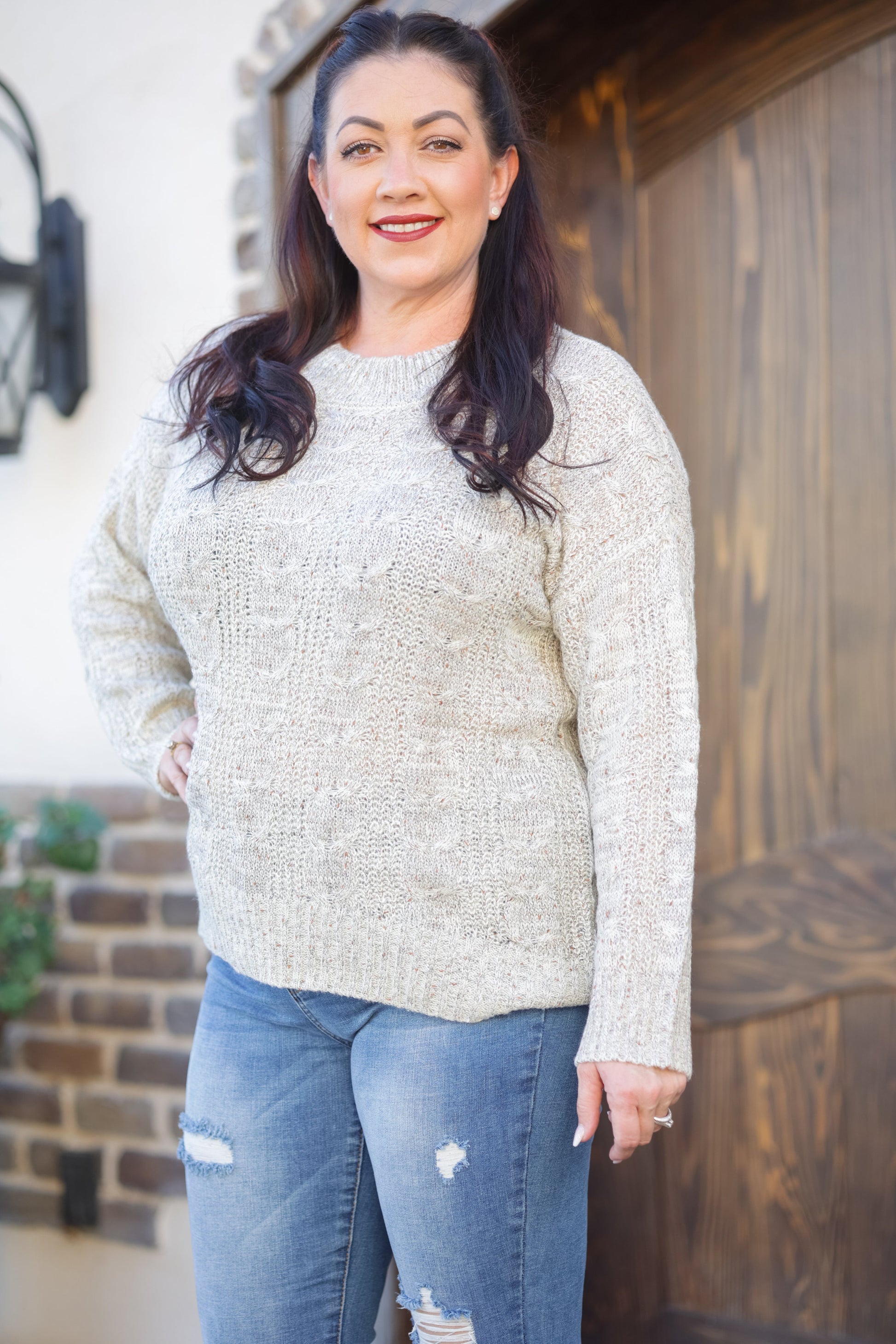 If you're looking for the best sweater of the season, look no further! This cable knit sweater was definitely knitted with all the love in the world. With a relaxed fit, this sweater features long sleeves, a crew neck and hi low hem.