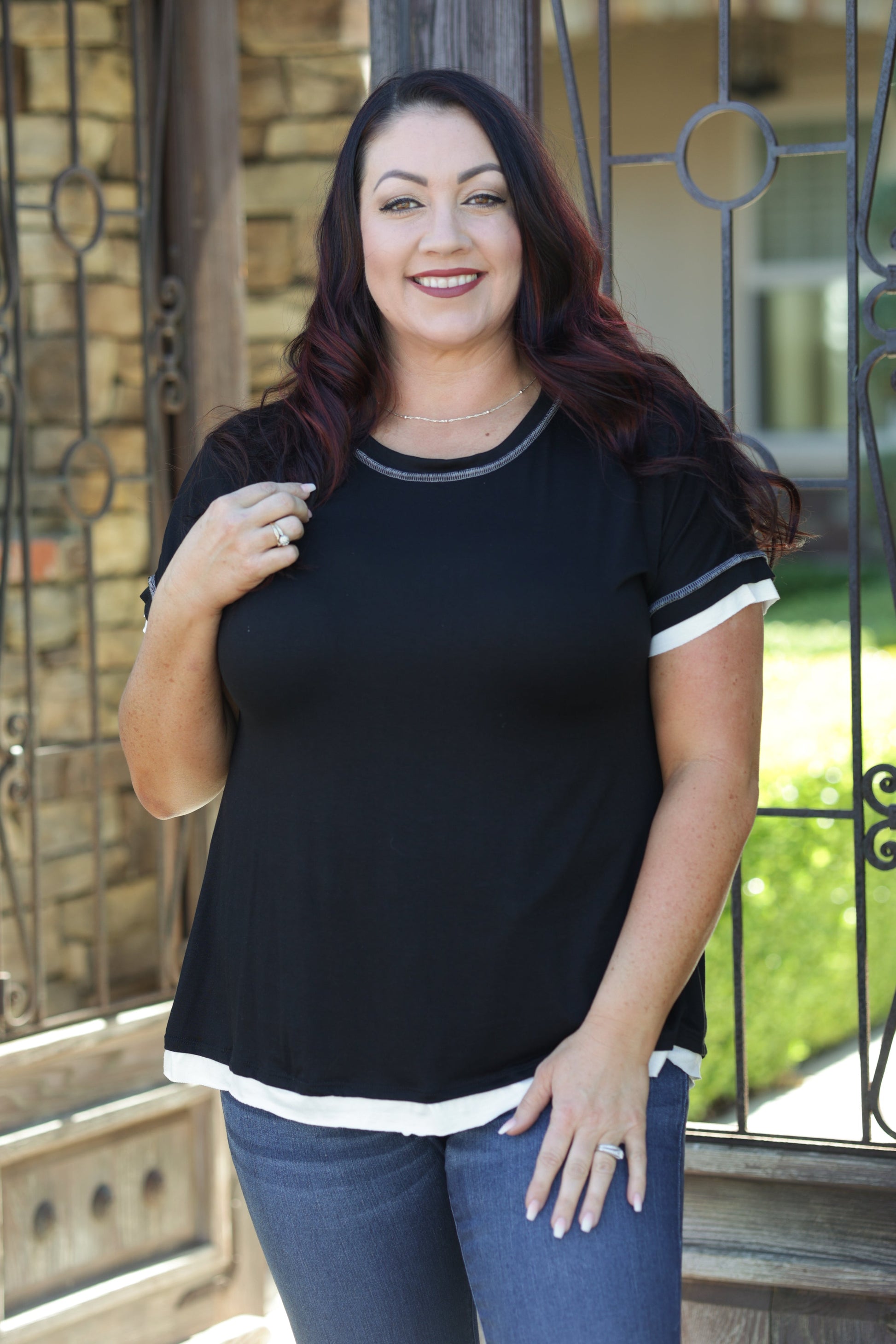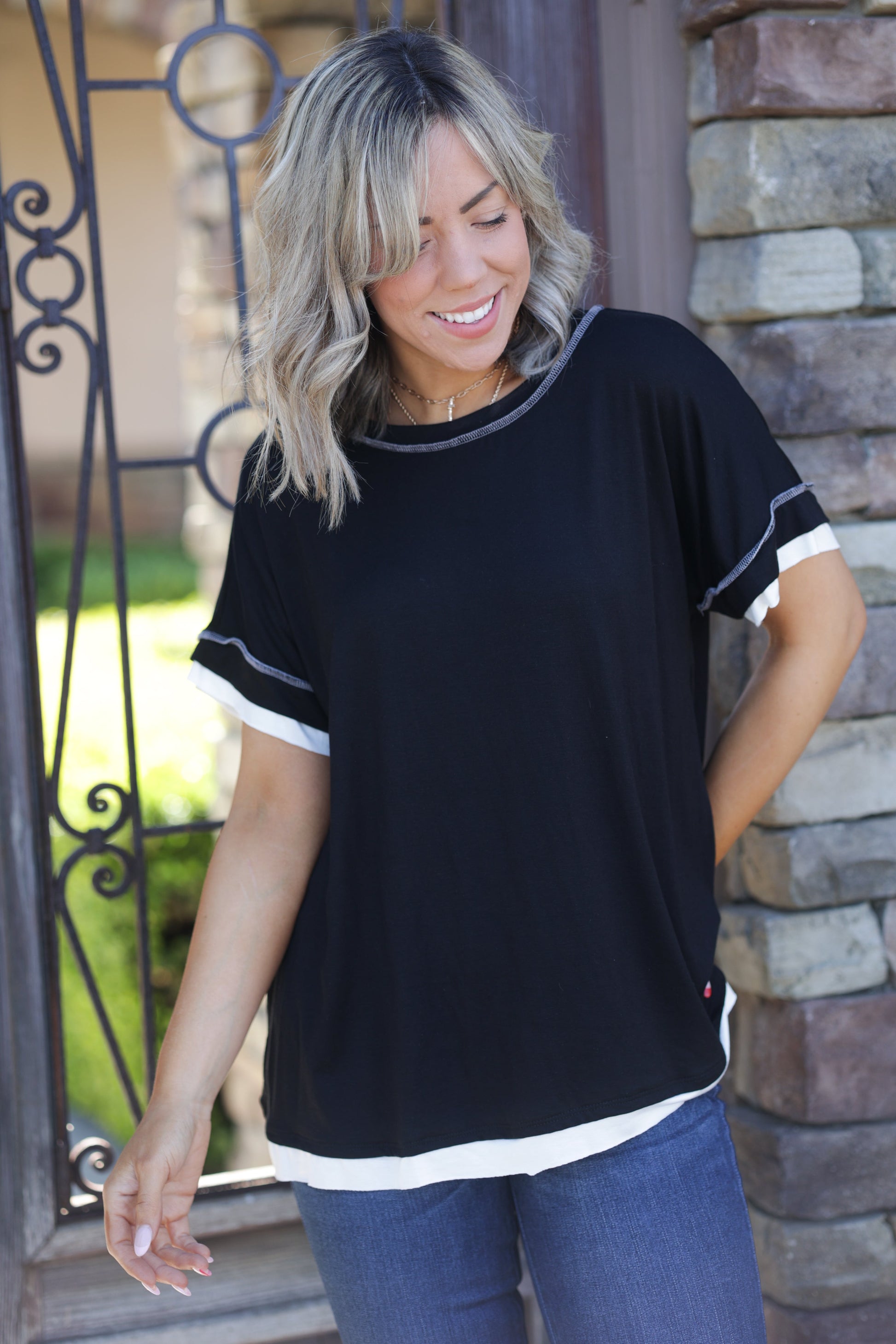 You are going to love this short sleeve top so much you are going to scream it out loud for everyone to hear. With a relaxed fit, this top features a double hem, round neckline and reverse stitch details.