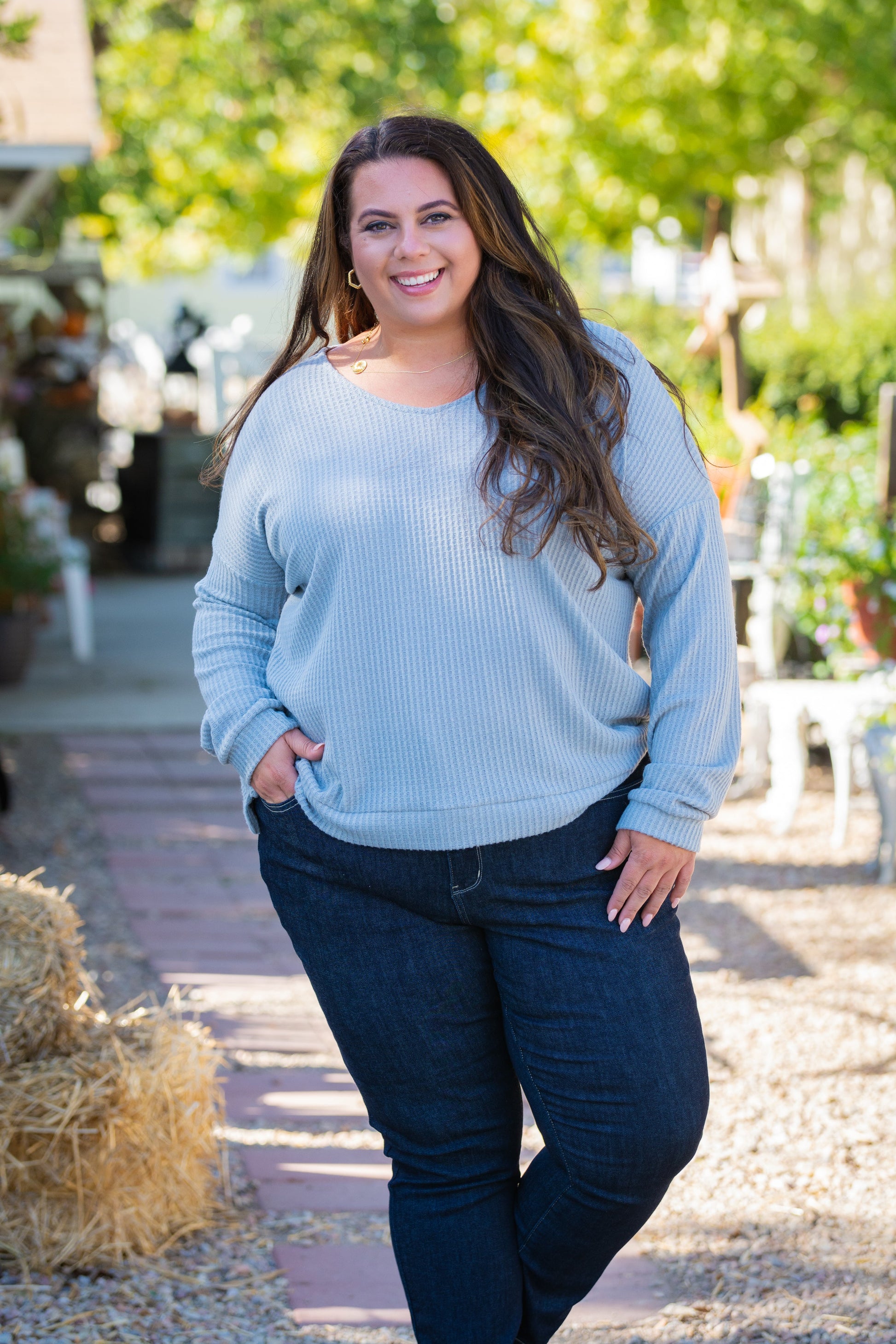 The softest brushed waffle knit in all the land! With a relaxed fit this top features a round neckline, long sleeves and hi low hem.