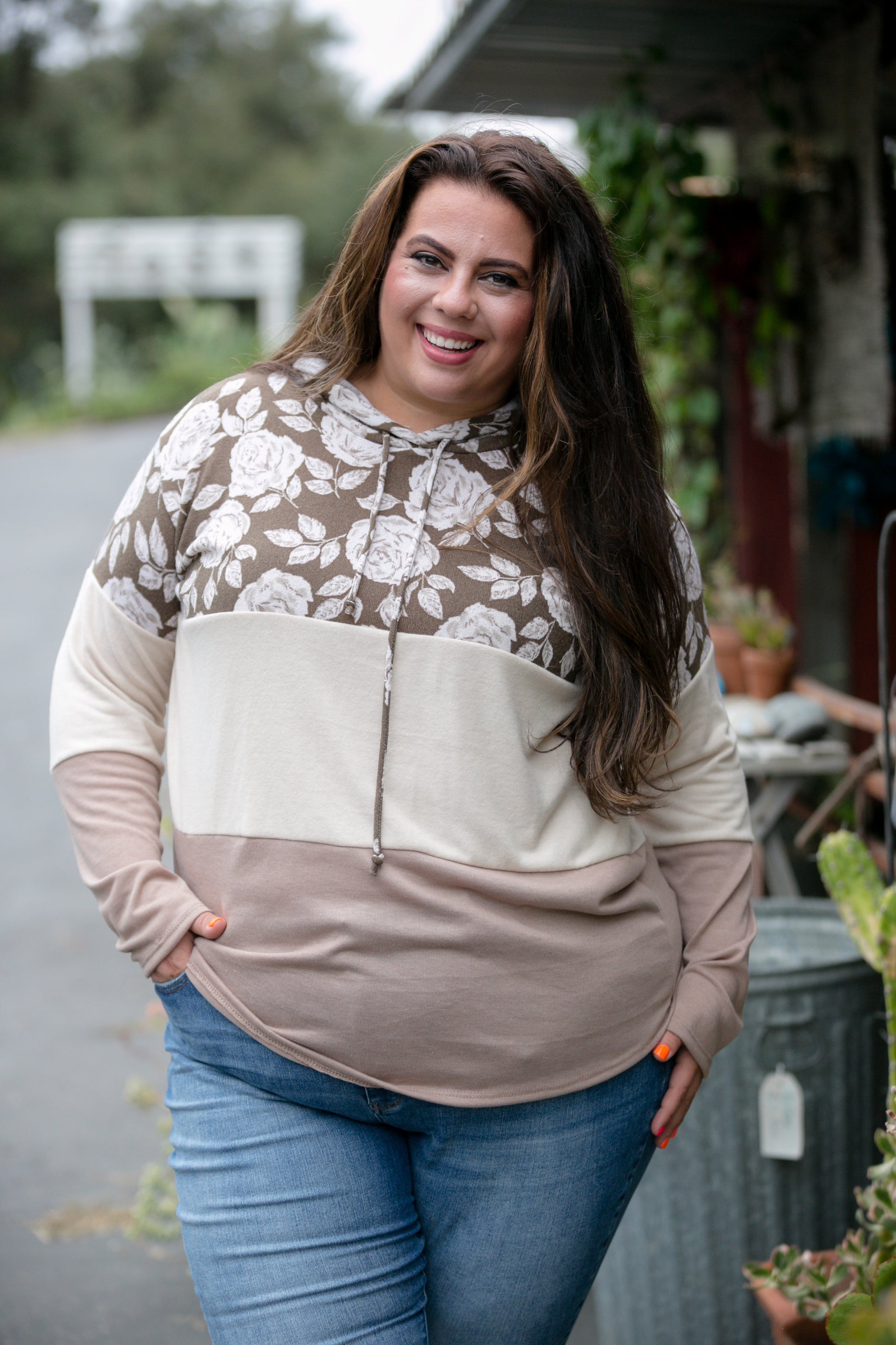 This colorblock hoodie is stunning and the perfect fall colors! With a relaxed fit, this top features long sleeves, a rounded hem and hood.