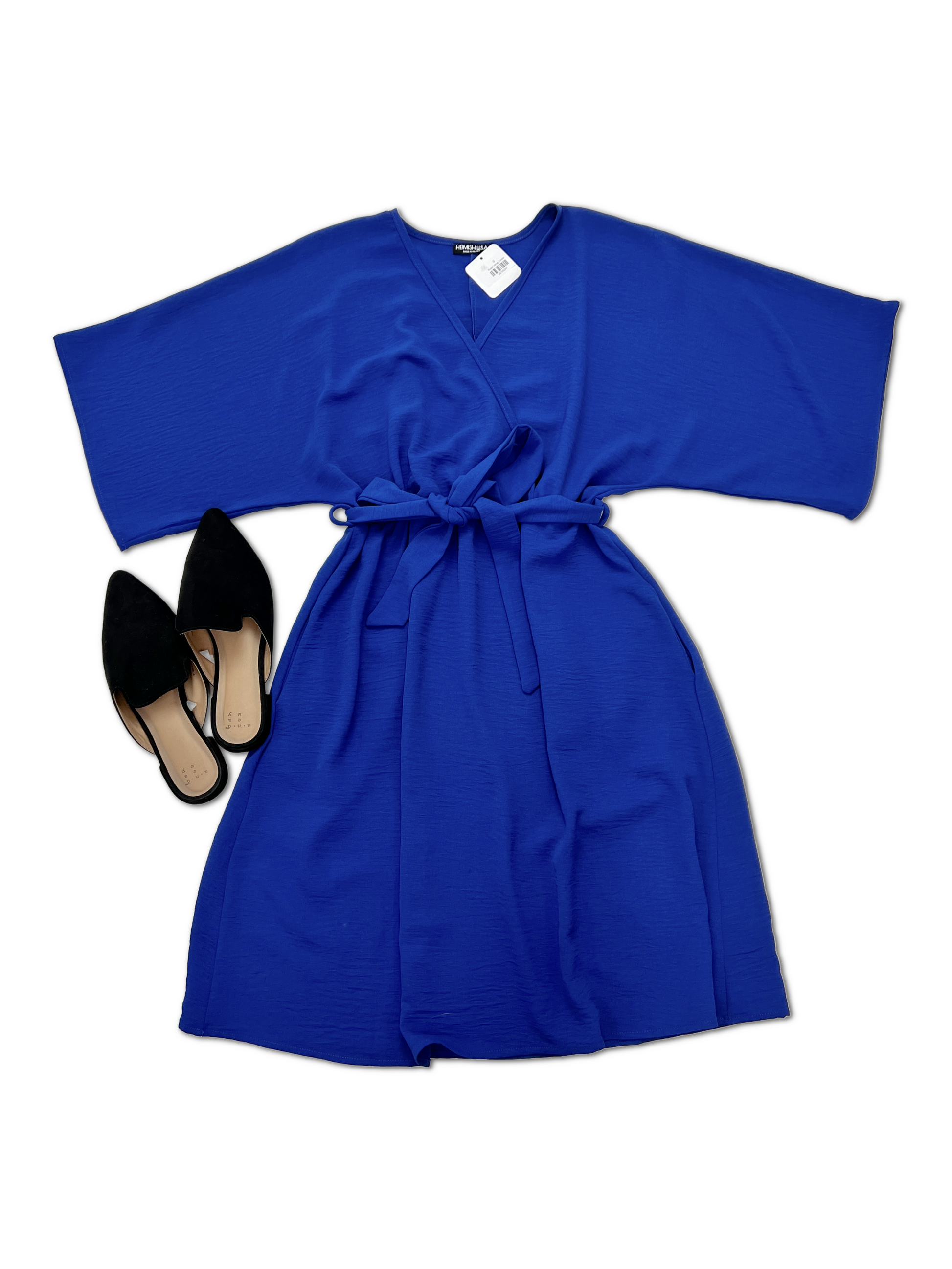 Effortlessly chic and versatile, the Royal Wrap Dress is a must-have addition to your wardrobe. The tie front and V-neck add a touch of femininity, while the deep royal blue hue makes a bold statement. Perfect for any occasion, this wrap dress will have you feeling confident and stylish.