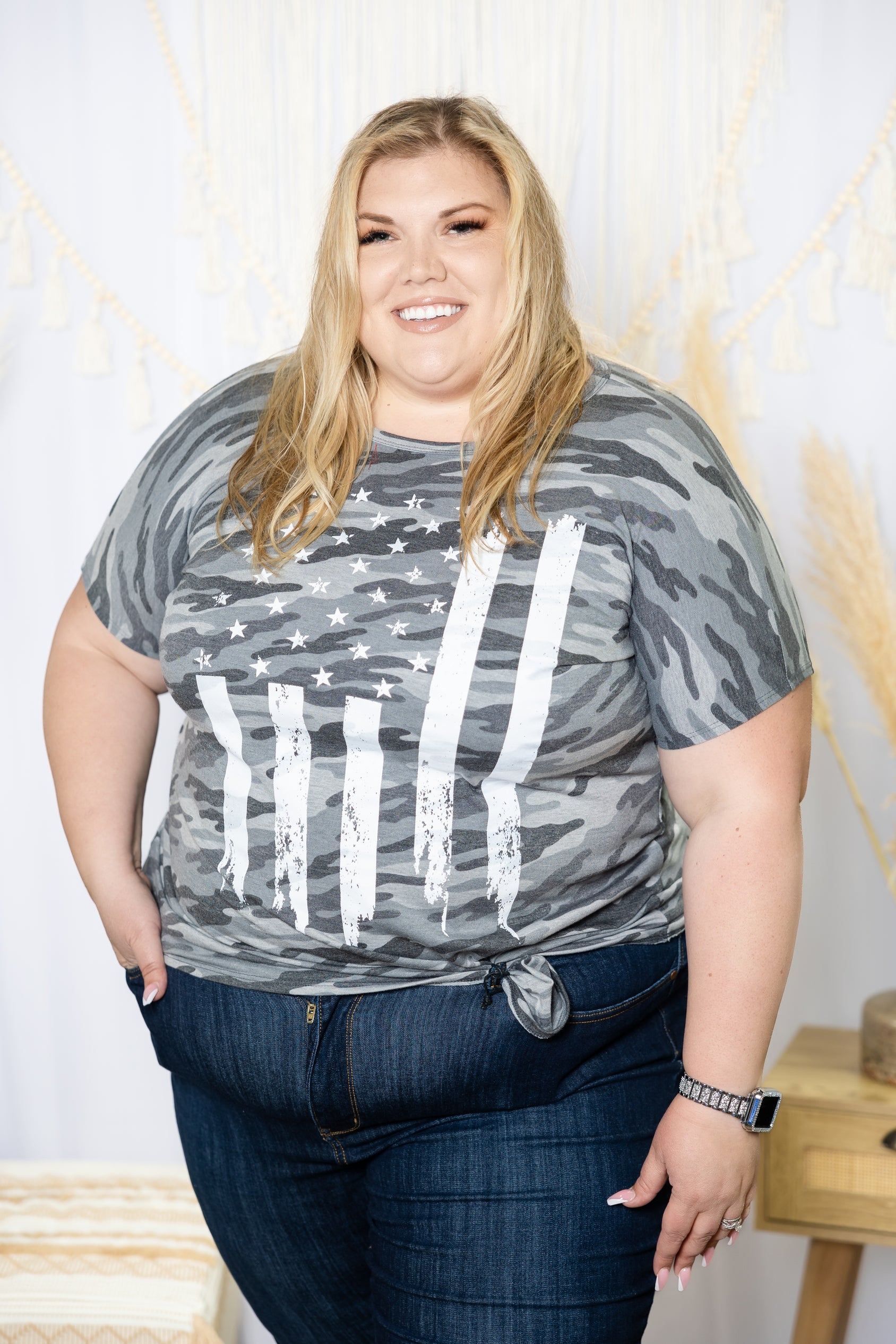 Gear up for your next adventure with Salutes To You Short Sleeve! This bold piece features grey camo flag print for a patriotic look that's sure to turn heads. Its relaxed fit and crew neck construction create a comfortable feel you can depend on. Dare to be you and get ready to take on the world with Salutes To You!
